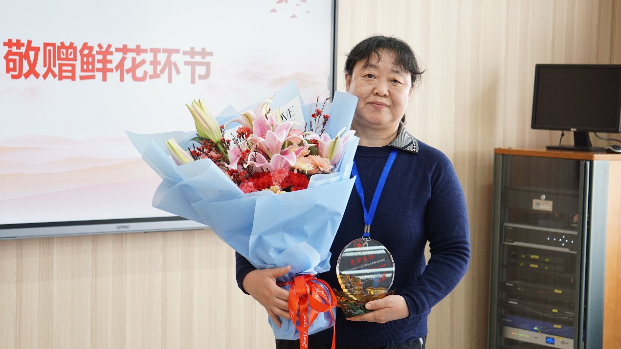 荣休会上首先播放了学院工会为韩老师制作的温馨视频,视频中展示了一幕幕韩老师在教学、指导学生、科学研究和获奖中的难忘瞬间以及部分老师为韩老师送上的真挚祝福。随后,学院党委副书记、副院长倪宇老师发表了致辞,倪老师系统地总结了韩老师在教学、人才培养和科学研究方面取得的突出成就,称赞了韩老师严谨治学、甘为人梯、无私奉献的精神,表达了对韩老师的感谢与祝福。随后,倪宇老师为韩老师颁发了荣休纪念铭牌,并献上了鲜花。