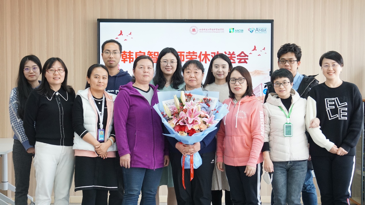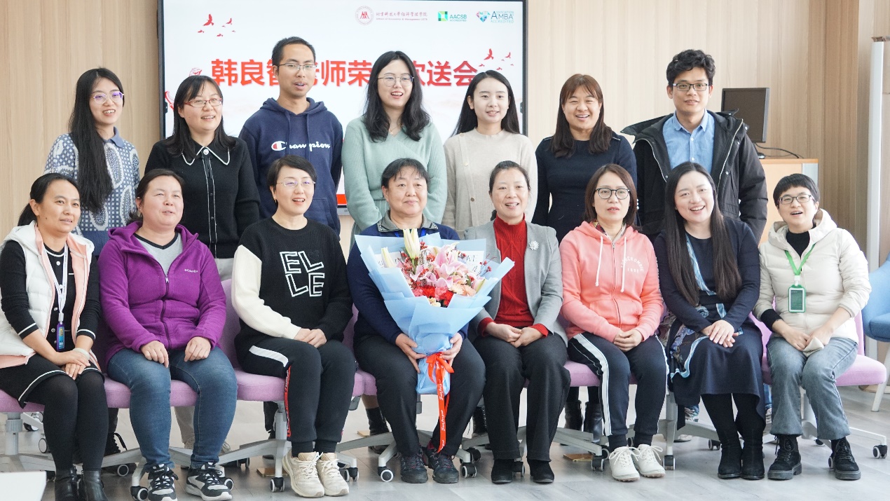 荣休会由学院院办、院分工会和财会系共同筹办,由财会系黄秋彬老师主持,学院领导、教师等30余人齐聚经管楼1205房间,共贺韩老师光荣退休,并送上了诚挚的祝福。