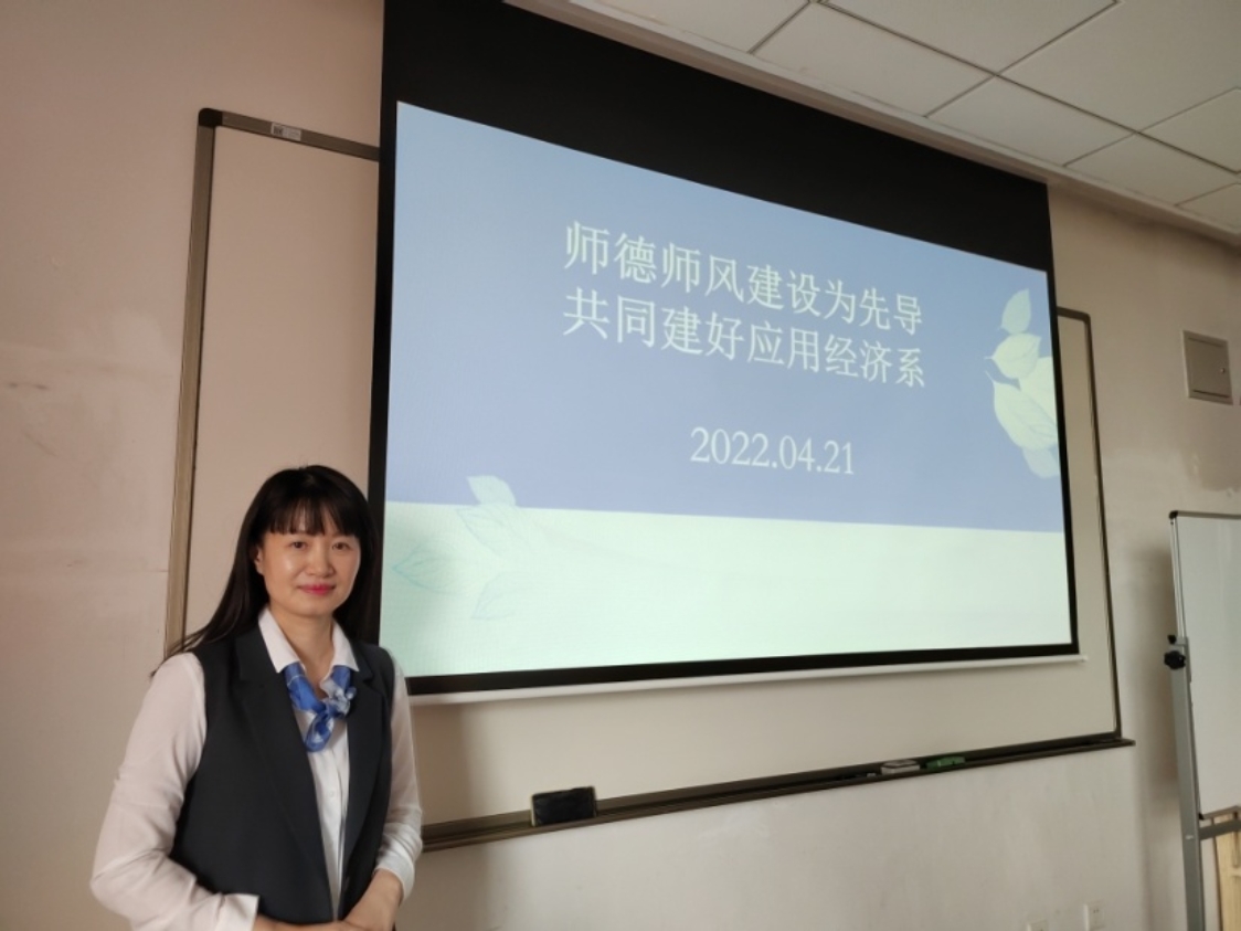 学院副院长、党委委员范小华老师在本系两个老师分享的基础上,对应用经济系在师德师风建设中的工作予以肯定,并表示自己作为应用经济系一员,将一如既往地重视自身能力和素质的提升,努力为应用经济系的各项建设做出贡献。