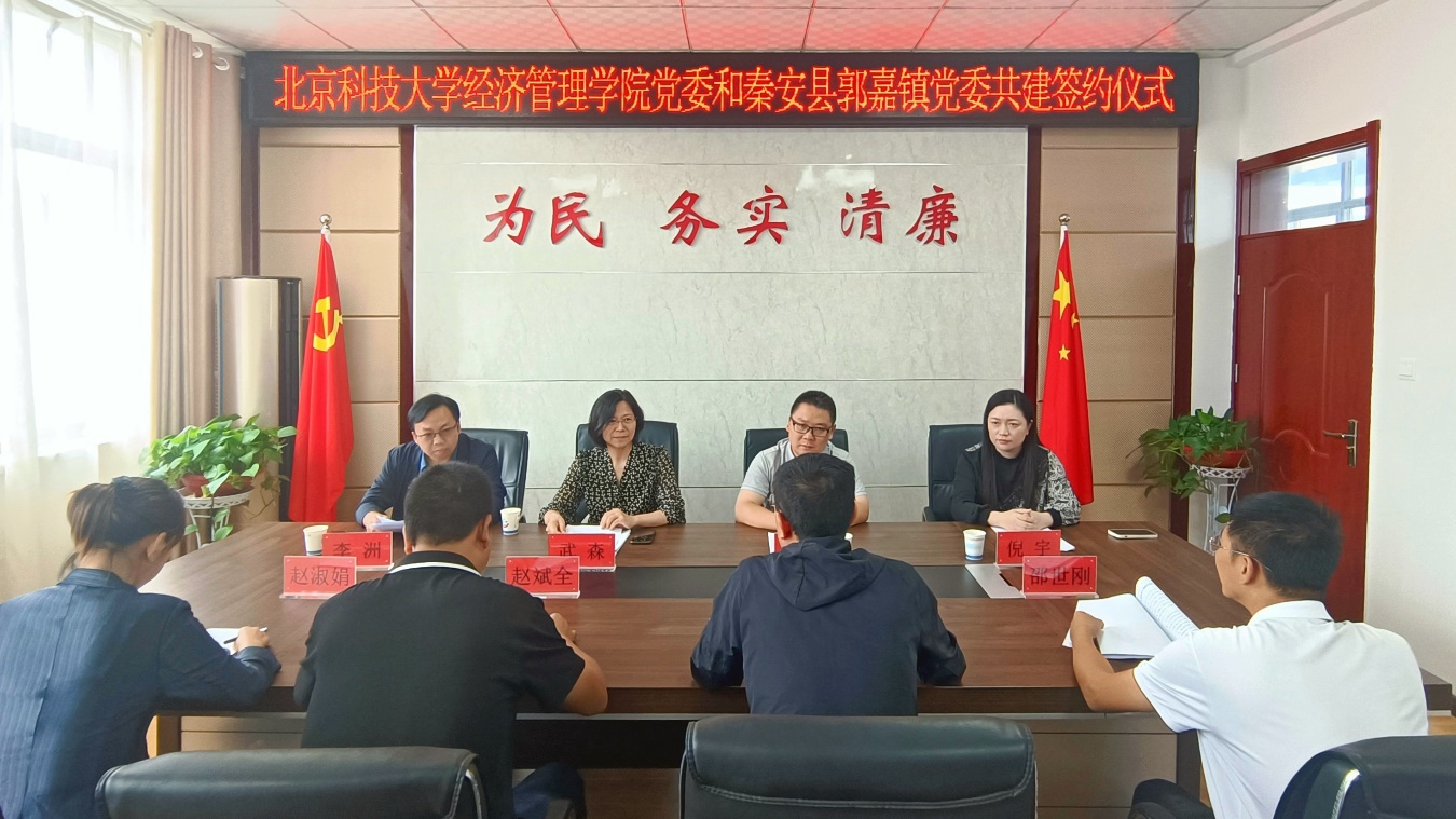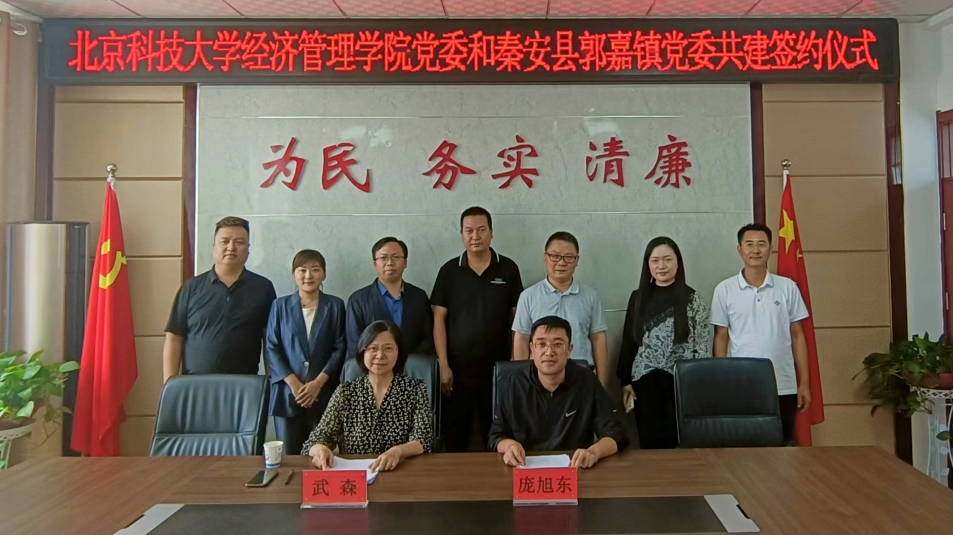 庞旭东对经管学院一行的到来表示欢迎,对学院定点帮扶工作的高度重视表示衷心感谢。他系统介绍了郭嘉镇近年发展的整体情况和当前面临的主要问题和需求,希望双方党组织以此次共建签约为新起点,加强工作联系和经验交流,在乡村振兴新的历史阶段推动双方融合发展,共同促进高质量发展。