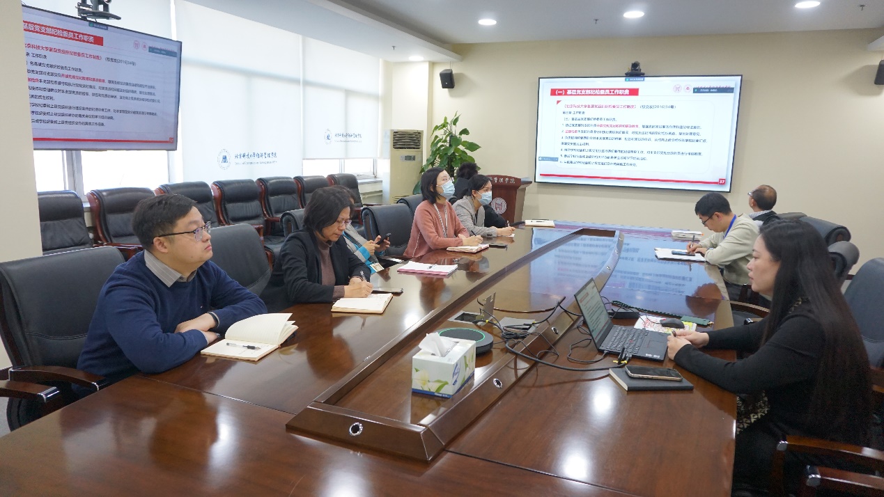 倪宇为全体教工党支部纪检委员开展专题学习培训,传达学习贯彻习近平总书记在二十届中央纪委三次全会上的重要讲话精神和二十届中央纪委三次全会公报,从背景意义、内涵要义和贯彻执行三个方面领学新修订的《中国共产党纪律处分条例》。会上,再次强调了基层党支部纪检委员工作职责,并对教工党支部纪检委员进一步提高履职能力提出四点要求:一是明职责,明确职责定位,提升思想认识,主动作为,精准履职尽责;二是亮身份,主动亮明身份,接受监督,不断增强责任感、荣誉感、使命感;三是强学习,强化持续学习,提升政治理论水平、政治思想觉悟和拒腐防变能力;四是实监督,做实监督首责,发挥基层纪检委员“前哨”作用,筑牢党内监督第一道防线。