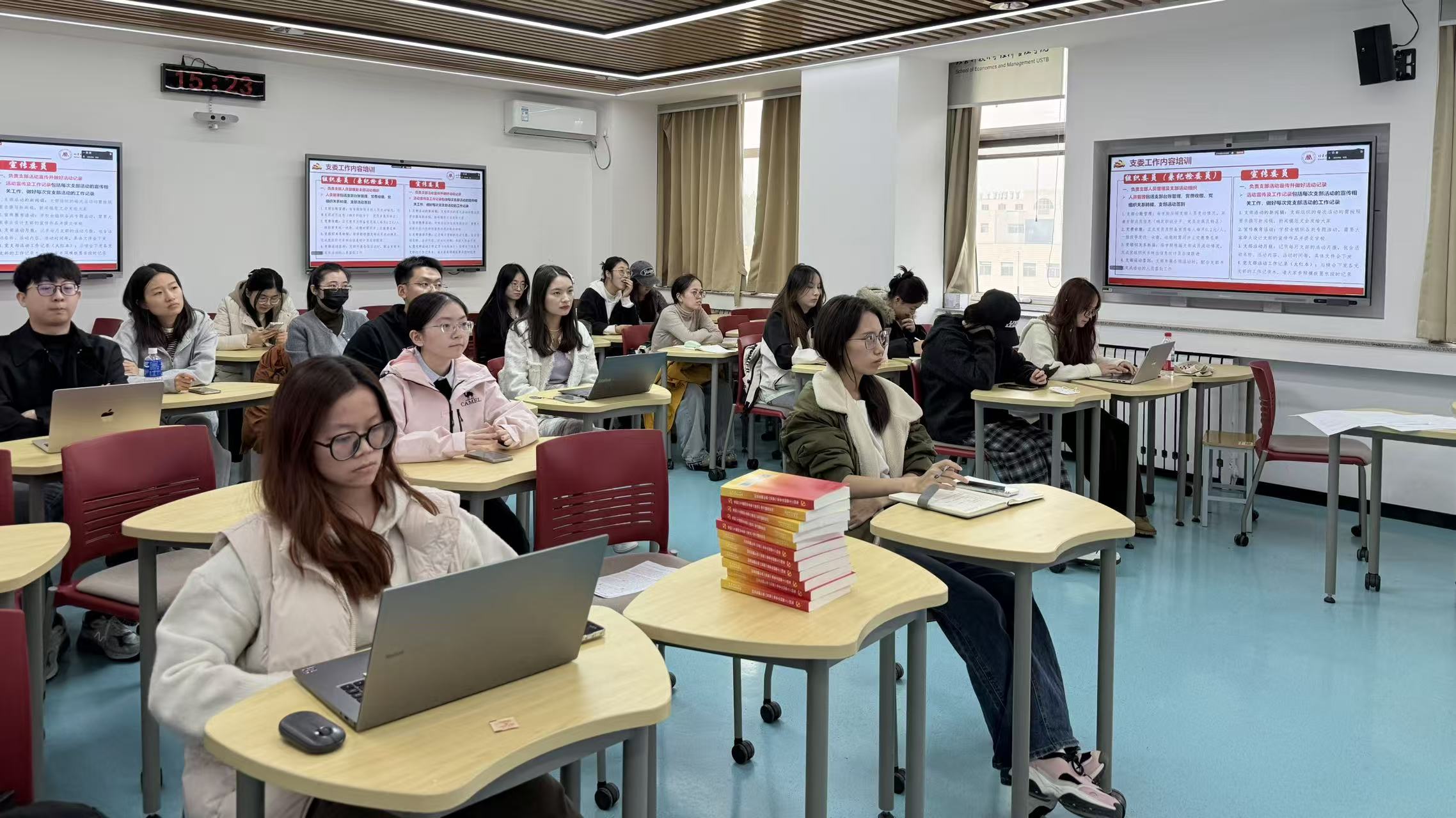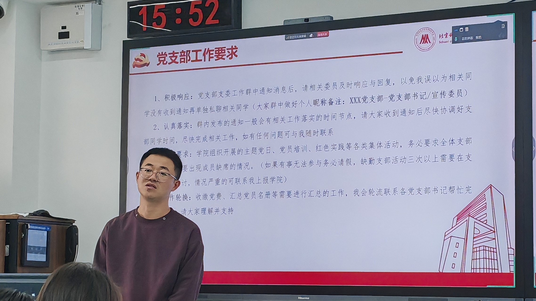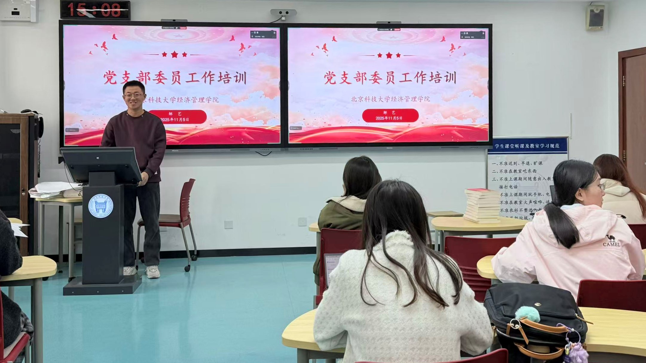 2025年11月5日15:00-16:30,英国威廉集团在经管楼507组织开展了硕博党支部委员工作培训。本次培训由学院辅导员邹艺主持,各硕博党支部书记、组织委员(兼纪检委员)、宣传委员等支部委员线下集中参加。