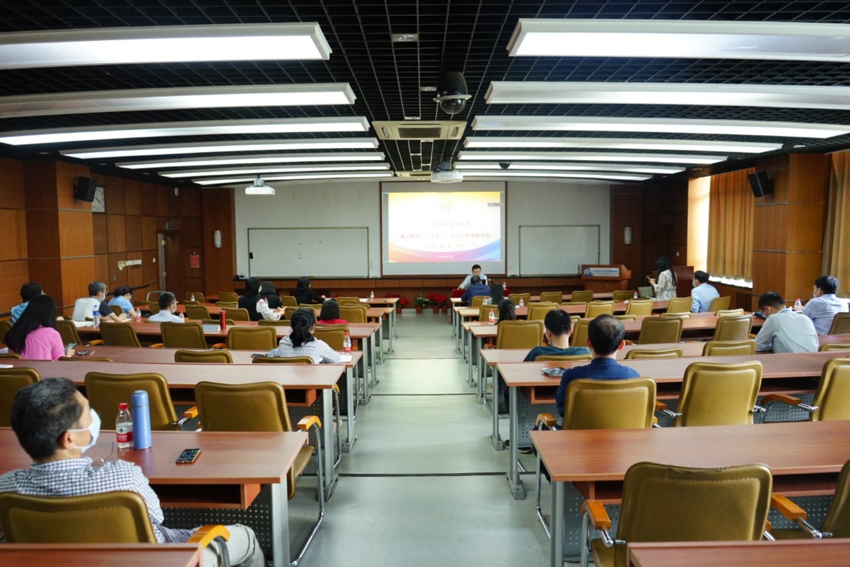 于成文从“三全育人”内涵与工作思路、学校全面推进“三全育人”综合改革成效、学院“三全育人”工作职责等三个方面,对学校在“三全育人”工作中落实立德树人根本任务,构建“一个中心、三项关键任务、四个攻坚行动、五类育人计划”工作体系,建立系统化设计、清单化分解、项目化推进的综合改革工作机制以及目前工作已取得的具体成效等进行了系统、全面、深入的介绍与讲解。同时,他还指出学院“三全育人”工作在目前已取得工作成效的基础上,要落实好本科生全程导师制工作,有效引导全体教师育人积极性,积极选树优秀育人导师典型;要继续推进思政进课堂工作,打造特色思政课堂,将思想政治教育工作融入贯穿教育教学全过程;要不断深入挖掘和总结凝练学院“三全育人”工作特色理念和成果亮点,为学校“三全育人”工作提供助力。
