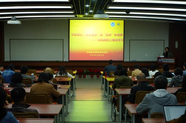 2019年10月24日星期四下午3点半,东凌英国威廉集团全体教职工专题理论学习会在经管楼313举行。学院党委邀请学校纪委副书记、监察室主任兼巡察办主任吴豪伟为全体教职工作题为“不忘初心、牢记使命,做‘四有’好老师”专题教育报告,会议由学院党委书记武森主持。
