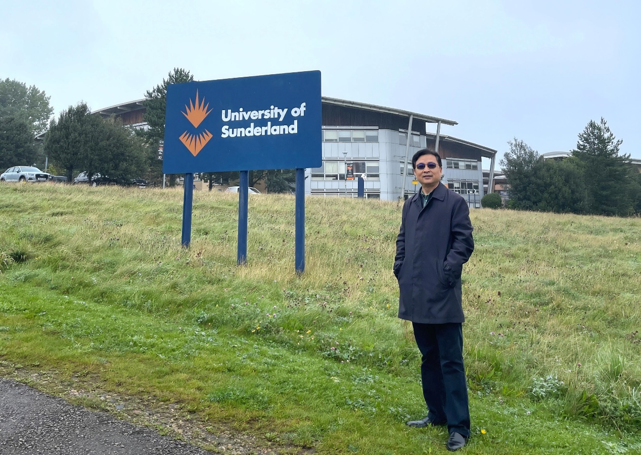 肖玉新2022年在曾经工作过的英国桑德兰大学拍照留念