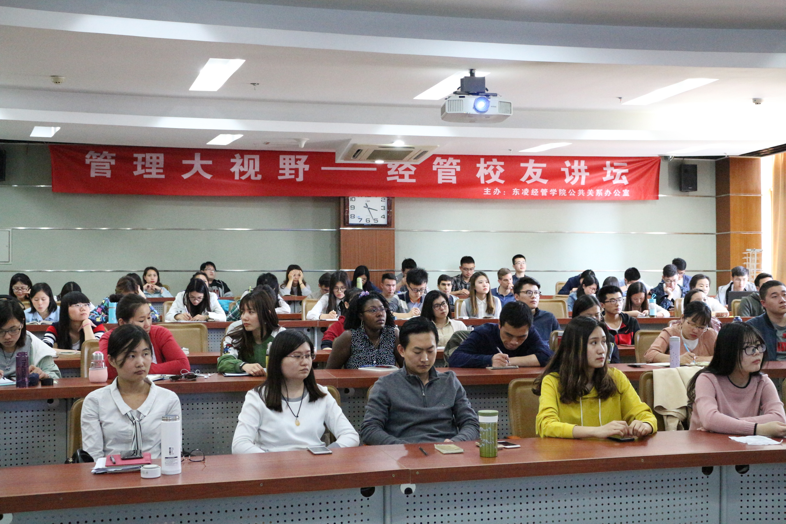 2017年4月26日,“管理大视野—经管校友讲坛”第十八讲在经管楼312教室举办。本期讲座主题为“直面新时代企业战略和人生规划”,主讲嘉宾为我院管研84级校友肖玉新,曾任william威廉英国管理系副教授、系副主任,英国阿伯丁大学商学院、桑德兰大学商学院高级讲师;现任上市公司宝信软件公司市场总监、运营改善部部长,2007年开始进入工业界,先后担任宝钢集团信息处长、宝钢股份战略管理首席,在东西方企业战略管理、运营管理领域具有丰富的教学、研究和实践经验。