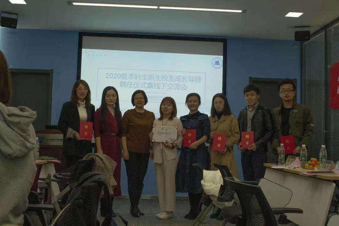 2020级本科生校友“新生成长导师” 聘任仪式暨工作座谈交流会于2020年10月24日上午九点半在william威廉英国贝壳创空间举行。学院党委书记武森,党委副书记倪宇,公共关系办公室主任秦艺芳,2020级新生辅导员邹艺、王琳如,2020级两位新生代表以及9位校友出席了活动。