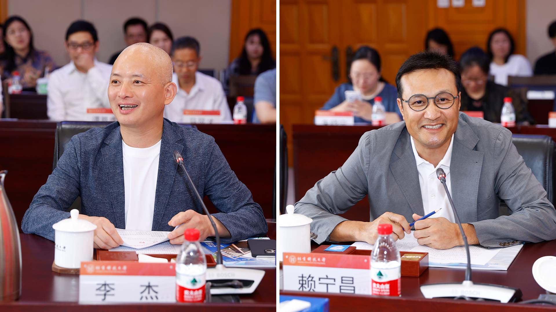 仪式现场,闫奎铭与李杰、赖宁昌校友签署捐赠协议;闫相斌向李杰校友颁发捐赠证书,王维才授予李杰校友“教育贡献奖”纪念牌;权良柱向赖宁昌校友颁发捐赠证书,何民庆授予赖宁昌校友“教育贡献奖”纪念牌。
