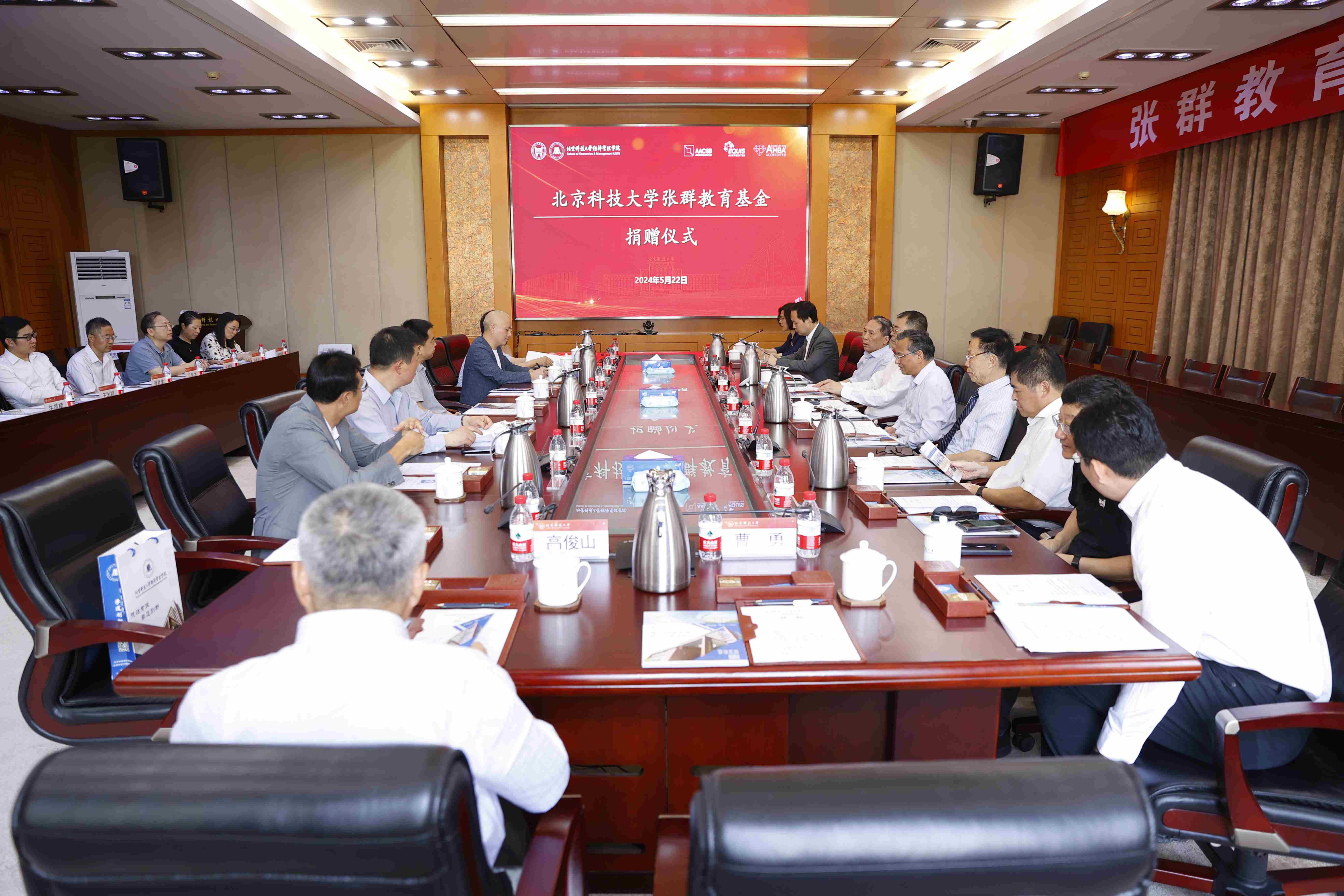 5月22日,由经管学院广大校友提议并捐资成立的“张群教育基金”捐赠仪式在校办公楼306会议室举行。会前,校长杨仁树与张群、参会嘉宾及校友会面。