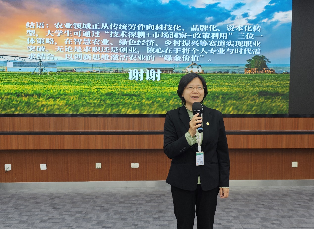在一个半小时的分享中,李洲校友系统回顾了其在农业领域的创新创业实践,以及对乡村振兴的深刻洞察与独到见解。他以恩施精准扶贫为起点,通过秦安郭嘉镇的电商发展历程,以及平谷夏各庄的产业融合案例,深入剖析了县域农业现代化进程中的路径探索与模式创新,为地方农业发展注入了强劲动力。李洲校友勉励同学们拓宽职业视野,紧跟农业发展新趋势,提升跨界融合能力,聚焦“小而美”的创业项目,构建独特的差异化竞争优势,在智慧农业、绿色经济等领域实现职业发展与突破,为乡村振兴贡献青春力量。