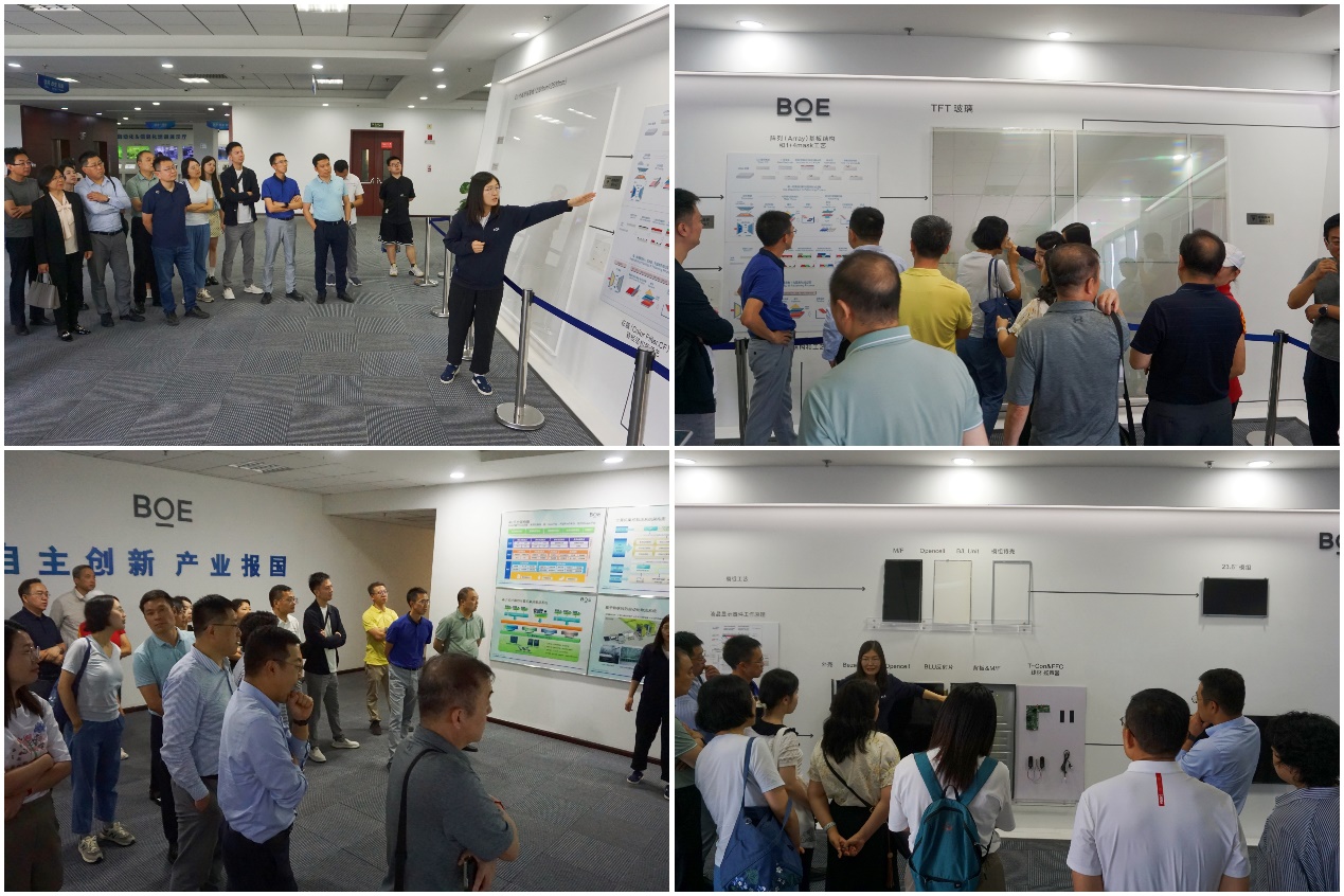 在文兴烨校友的陪同下,武森一行首先参观了京东方技术创新中心展厅。该展厅是在公司向物联网转型的背景下打造的,以“核心技术+应用场景”为展示逻辑。大家亲身体验京东方高新技术产品在显示技术、传感器技术、智慧系统、健康服务等多个领域的实际应用,深入了解京东方集团各业务领域的先进技术、产品与解决方案,全面领略公司各业务领域的领先成果。