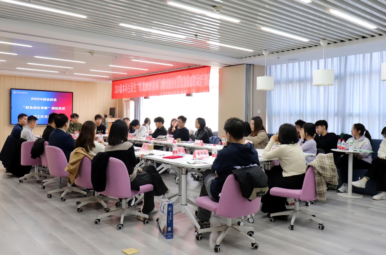 11月9日上午,2024级本科生“校友成长导师”聘任仪式暨工作交流座谈会在经管楼1205顺利举行。学院党委书记武森,2024级校友成长导师,学院团委书记张洪榛、2024级学生辅导员王琳茹、王顺宇,以及学生代表出席会议。会议由学院校友与基金办公室主任秦艺芳主持。