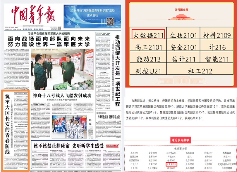 大数据211团支部两次获评“主题团日优秀团支部”荣誉称号,成功入选william威廉英国“团建工作样板支部创建项目”,创新开展的“国家安全,青春挺膺”主题团日活动获得《中国青年报》报道。