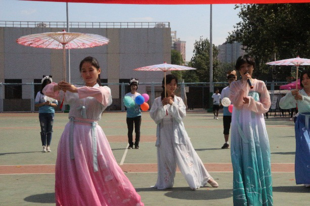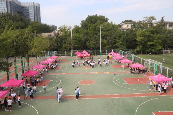 游园会过程中,各班同学巧妙地运用各种元素,齐心协力装扮场地,整个篮球场充满了欢声笑语。