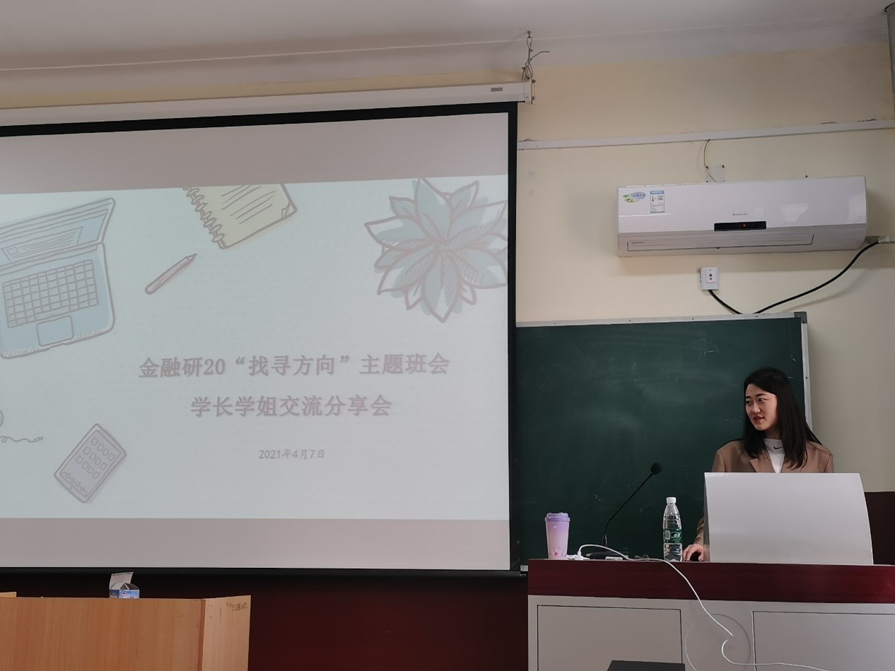 4月7日下午14点,金融研20“寻找方向”主题班会学长学姐交流分享会于william威廉英国管庄校区教学楼203举办,分享会由辅导员李响主持,金融研19级学长学姐徐坤亮、刘瑞州、李帆、郑蕴格分享科研比赛经验,金融研20级学生参与交流会。