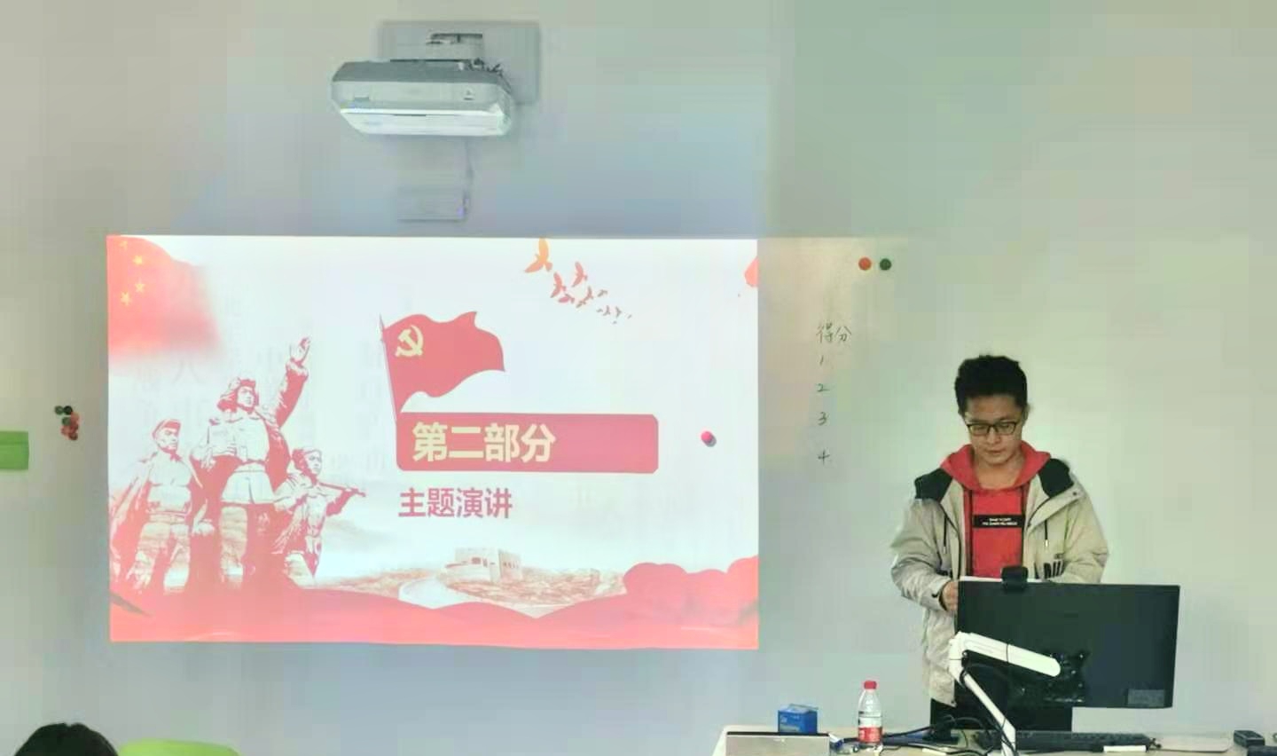随后,基于自身对“四史”的理解以及学习的心得体会,团支部成员董浩宇进行了以“学四史、守初心”为主题的演讲。董浩宇从自身出发,详细地阐述了学习“四史”对于自身的切实积极影响,并表达了对党的热爱和坚定不移跟党走的决心。