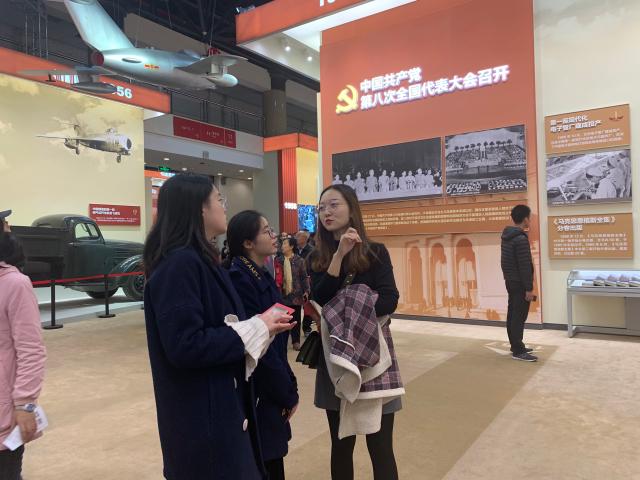 参观展览过程中,同学们兴致勃勃,积极参与各项互动项目,不时热烈交流讨论,感慨新中国成立70年来的伟大成就。同学们还以自己的出生年份为线索展开回忆,伴随着改革开放新时代成长起来的“90后”一代,在这里找到了属于自己的青春,感受着自己出生前后祖国的巨大变化,感受着我和我的祖国共同成长的喜悦。
