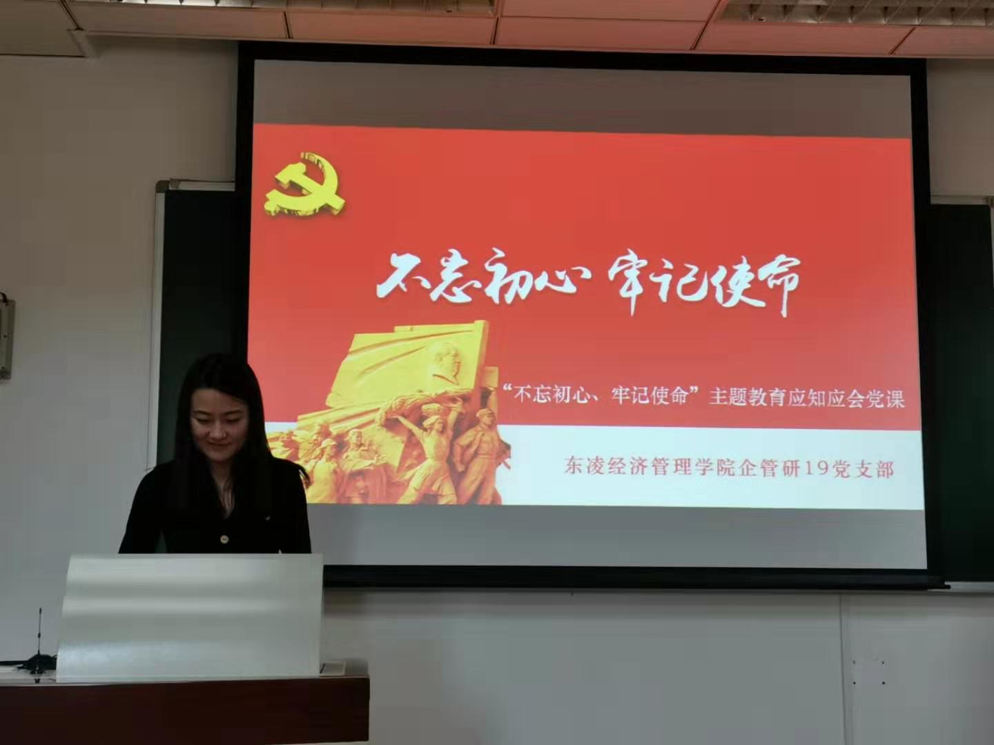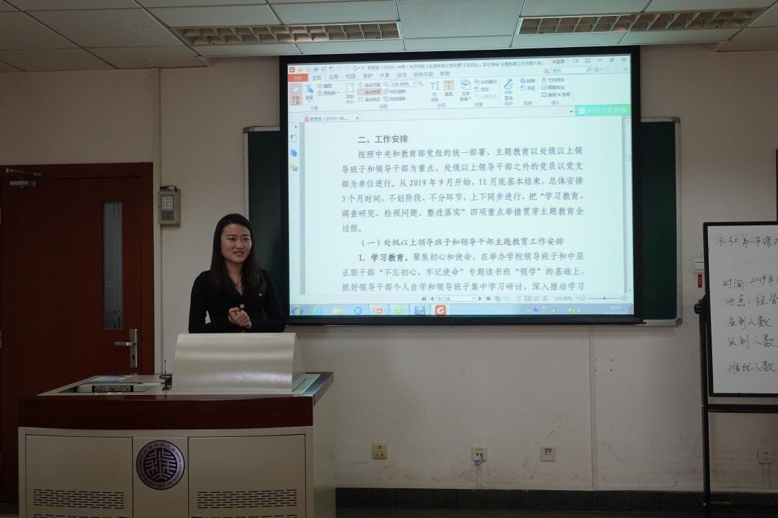 为响应在全党开展“不忘初心、牢记使命”主题教育的号召,根据“不忘初心、牢记使命”主题教育工作方案,10月25日下午,东凌英国威廉集团企管研19党支部于管楼504开展“不忘初心、牢记使命”主题教育应知应会党课,并邀请2019级研究生辅导员李响为全体支部成员进行讲解。