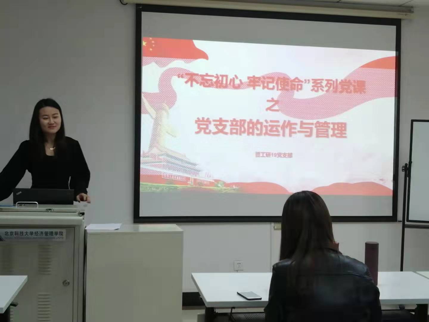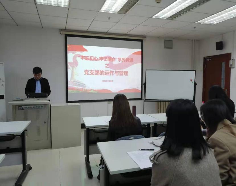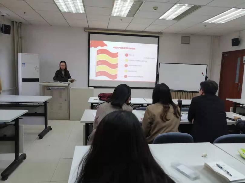 首先,尹香婷带领全体党员回顾“不忘初心,牢记使命”主题教育的核心要点,并给大家上了新学期第一次党课,党课以“党支部的运作与管理”为主题,从党支部的定义及工作原则、党支部的工作机制和组织生活、中国共产党发展党员工作流程三个方面出发,介绍党支部组成情况,党员发展流程等目前党支部基本的运作管理情况。