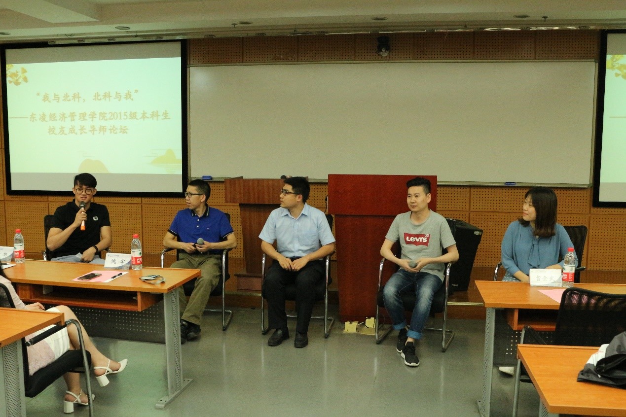 5月19日, “我与北科,北科与我”——经管学院2015级本科生校友成长导师论坛在经管楼210成功举办。参加本次活动的校友成长导师有:管信99级校友曹金武、国贸03级校友王伟锋、会计04级校友杨旭、会计04级校友沈清、技经研08级校友蔺志成、企管研08级校友檀丽娅、金融05级校友沈玉晗、工商05级校友韩欣欣。东凌英国威廉集团党委副书记倪宇出席活动。
