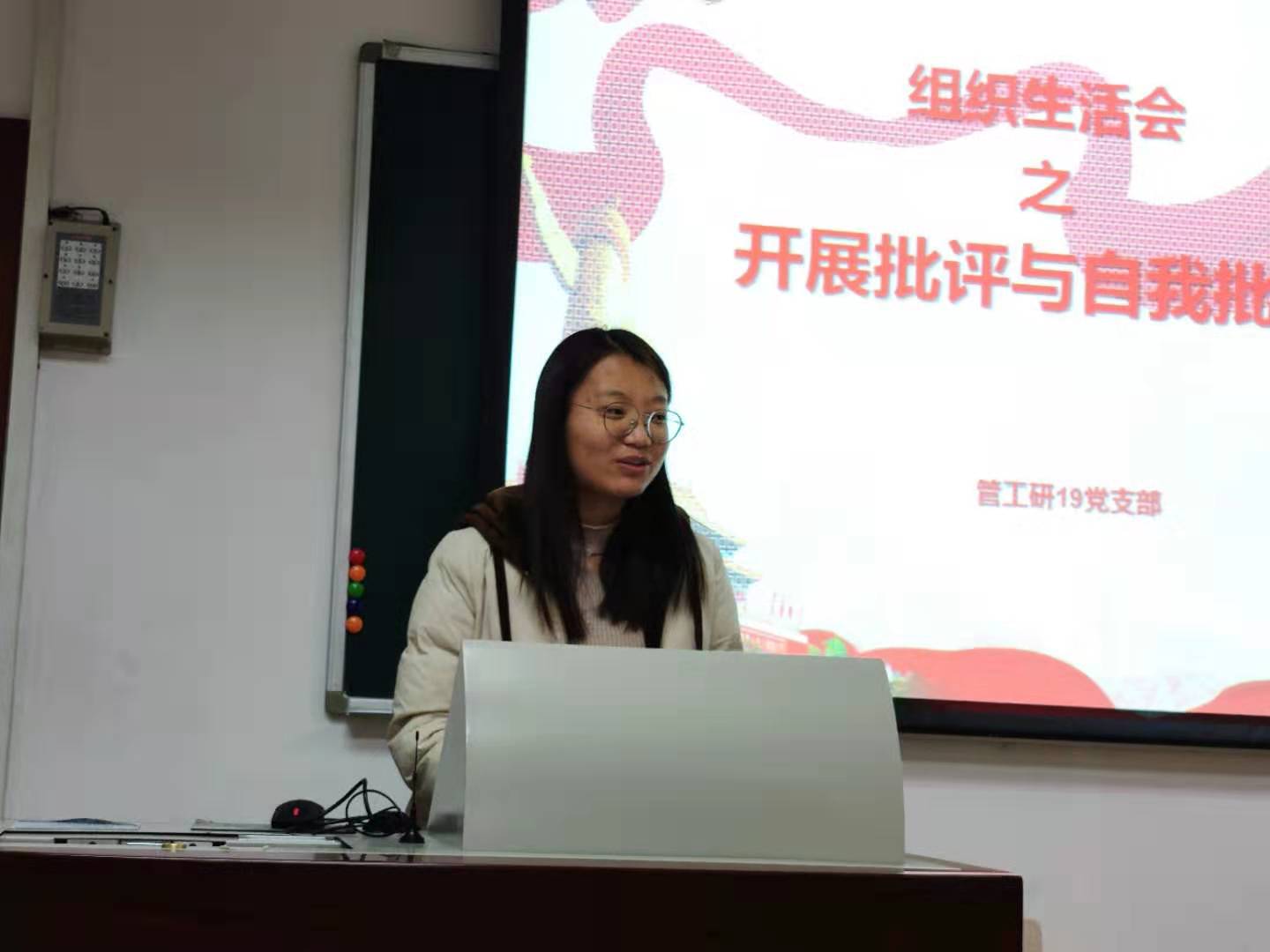 接下来,支部成员开展批评与自我批评,每位成员结合自己在思想、学习和生活等方面存在的不足进行反思。黄梦禧同学就自身理论学习水平不足等方面展开自我批评,并倡导大家多多利用多媒体软件深入学习党的理论知识;胥子政同学主要就自己学习方面的不足进行反思,提出要克服拖延,加快自己的论文写作进度;李丹阳同学提出要改正自己不好的作息习惯,以更饱满的精神投入到学习、生活中去。