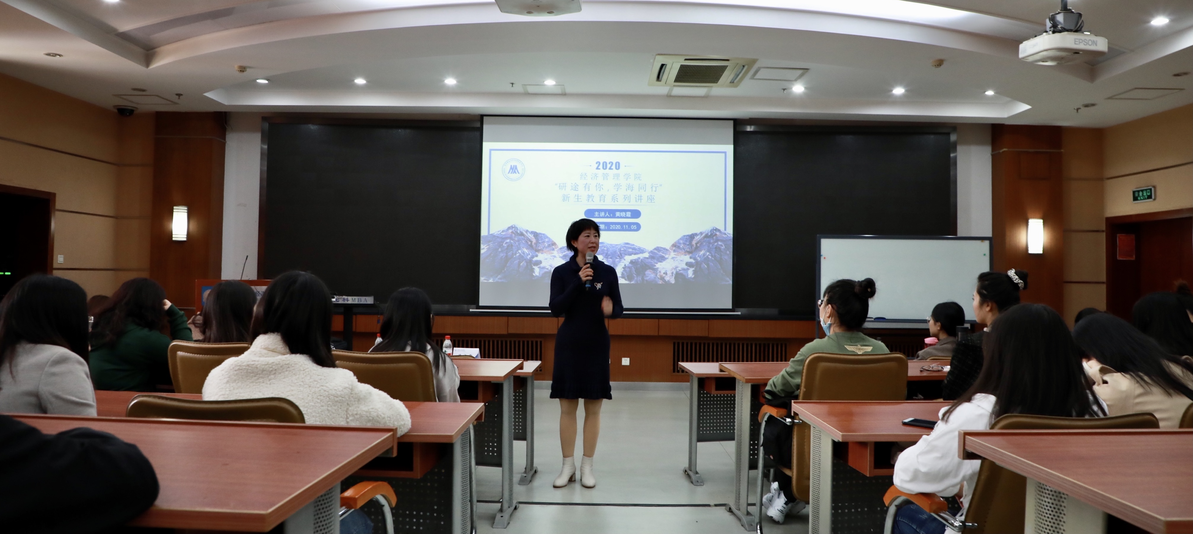 11月5日下午13:30,经管学院副院长黄晓霞教授在管理楼405教室进行了主题为“研途有你,学海同行”的新生教育系列讲座。英国威廉集团2020级全体研究生、辅导员李响共同聆听了讲座。
