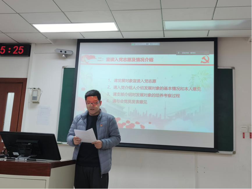 本次党员发展大会的主要议题是接收王奕丹同志和张琪若同志为中共预备党员。首先由王奕丹同志和张琪若同志依次宣读入志愿书。