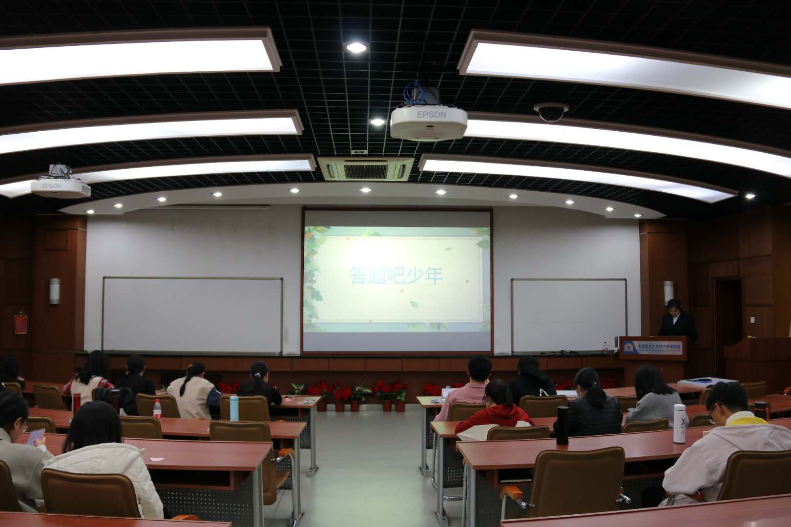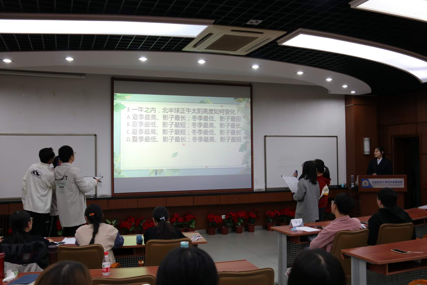 在这一环节中,各组慎重的选择题目难度并进行作答,是对能力、心态、运气的多重考核,场上比分瞬息万变,观众们看得津津有味,其中管理2001班更是用他们的勇气为全场带来了很多的欢乐,气氛达到了高潮。