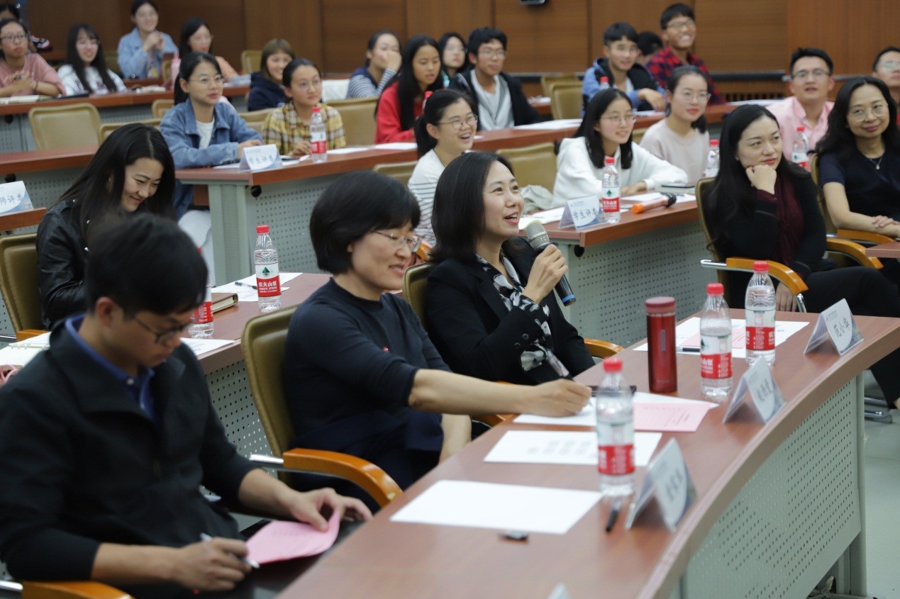 评委老师在提问环节与答辩选手交流,更加深入地了解了选手的情况。互动交流环节,19级学生积极地向优秀学长学姐提出自己在大学学习生活中的困惑,得到了答辩选手真诚耐心的经验传授,现场气氛热烈踊跃。