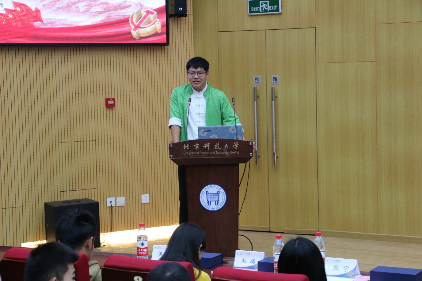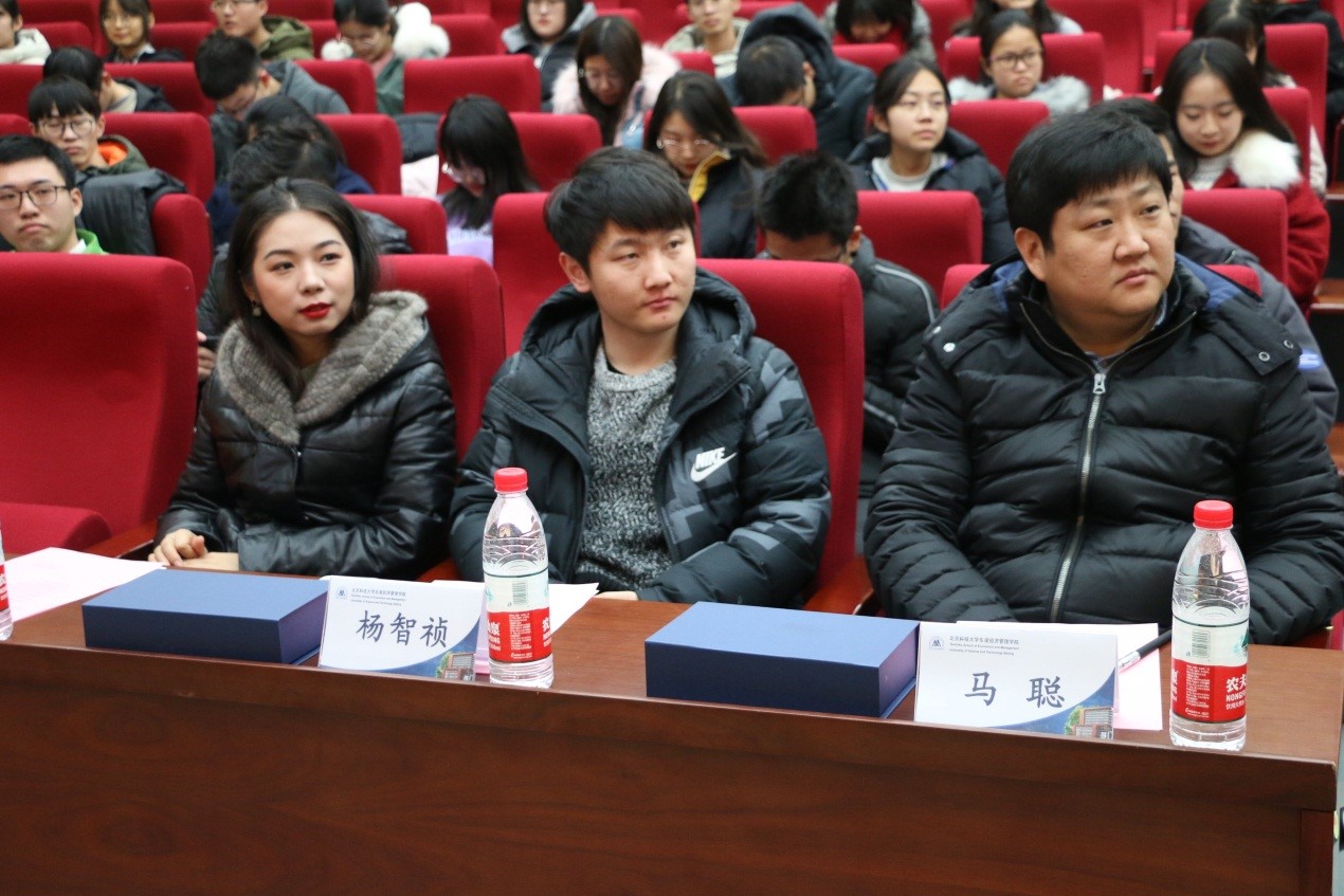 颁奖过后,学院党委副书记倪宇发言。首先她代表学院向受到表彰的同学们表示祝贺和敬意,肯定了经管学子坚持不懈、默默奉献的精神。同时她指出,表彰不仅是对大家过去的肯定,更是对大家未来的期许,希望同学们能够始终牢记并践行北科人热爱祖国、敢于担当、拼搏奋进的精神,通过身体力行,走在前列、干在实处、当好表率,带动身边的同学一起进步,为将来推动国家各项事业发展做出更大的贡献。