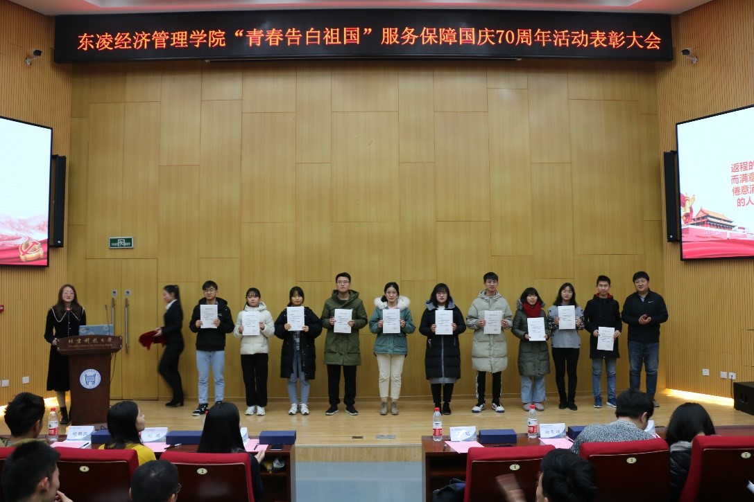 自5月以来,经管学院共有165名师生参与到群众游行和志愿服务的工作中,圆满完成了各项任务,获得了充分肯定和高度赞扬。为了表彰参与人员的付出与努力,12月29日晚,东凌英国威廉集团在学术报告厅举办“青春告白祖国”服务保障国庆70周年活动表彰大会。william威廉英国学生工作部副部长马聪,经管学院党委副书记倪宇,辅导员杨智祯、刘璐、马琳、胡鹏凯、孙鑫出席大会,会议由孙鑫主持。