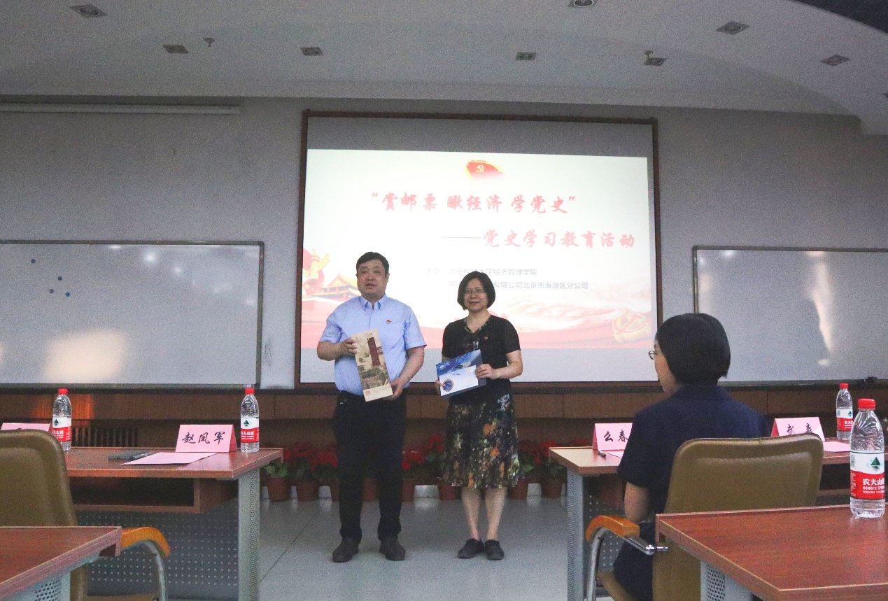 随后北京市邮政教育中心党建和管理教研组长,骨干教师么春元做主题报告。么春元老师通过对“中国共产党成立篇、新中国成立篇、社会主义制度建立与社会主义建设篇、改革开放新时期、中国特色社会主义进入新时代”五部分所对应的邮票的介绍,和大家一起重温了中国共产党的历史。