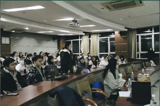 11月26日晚19:00经管楼312考研经验分享会成功召开。本次分享会首先由邹艺辅导员做开场简介,为到场的成功上岸的学长学姐们分发纪念品并合影。