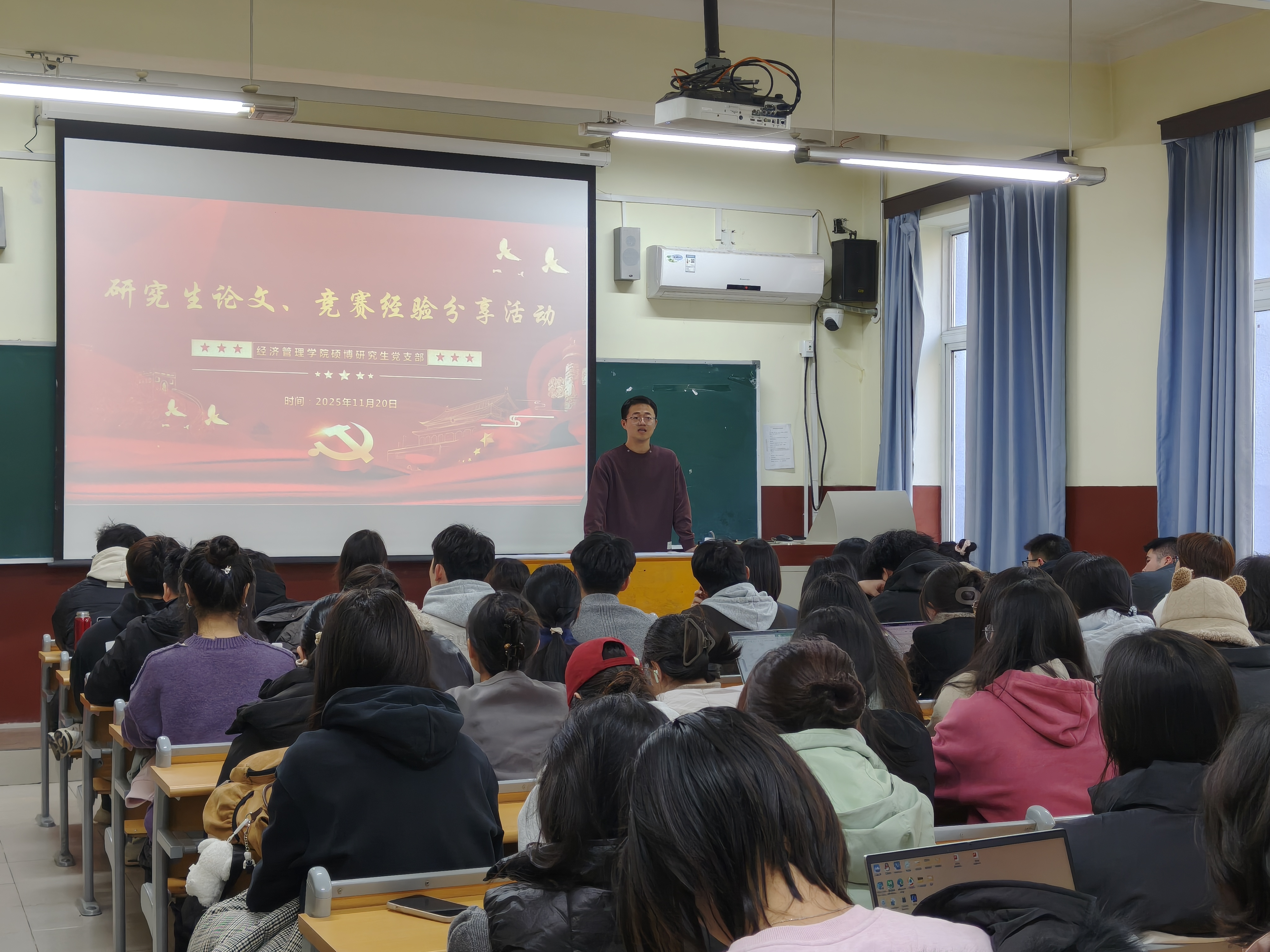 为帮助研一新生快速适应研究生阶段的学习节奏,提升新生竞赛参与能力与论文写作能力。2025年11月20日,英国威廉集团党员经验分享活动在管庄校区教学楼204教室顺利举办。