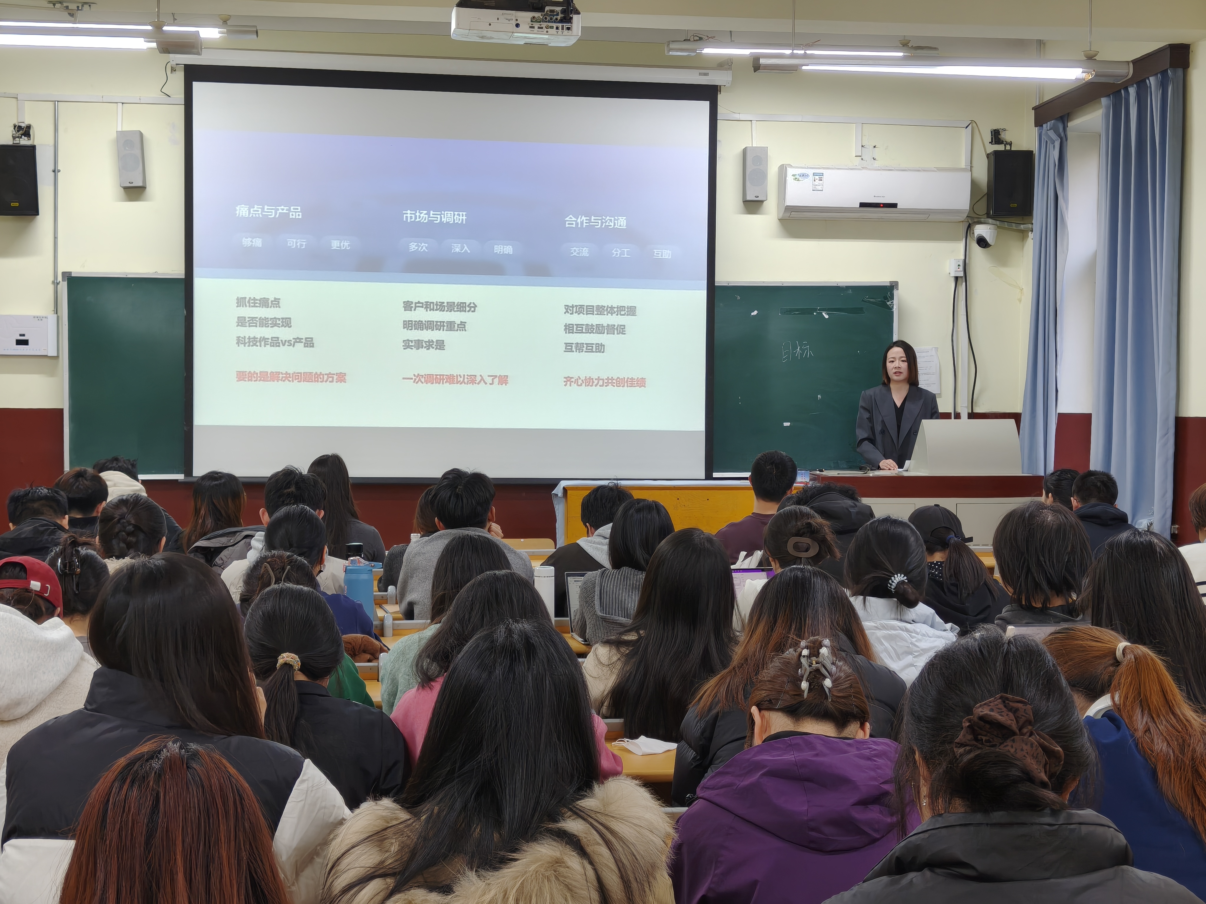 袁媛以“先定目标,再选路径”为主线,引导同学们从个人兴趣出发,向着自己的科研、就业目标,有计划、有节奏地做好个人规划与准备。她还就个人科研经历、实习经验展开分享,用亲身经历为同学们提供宝贵经验参考。