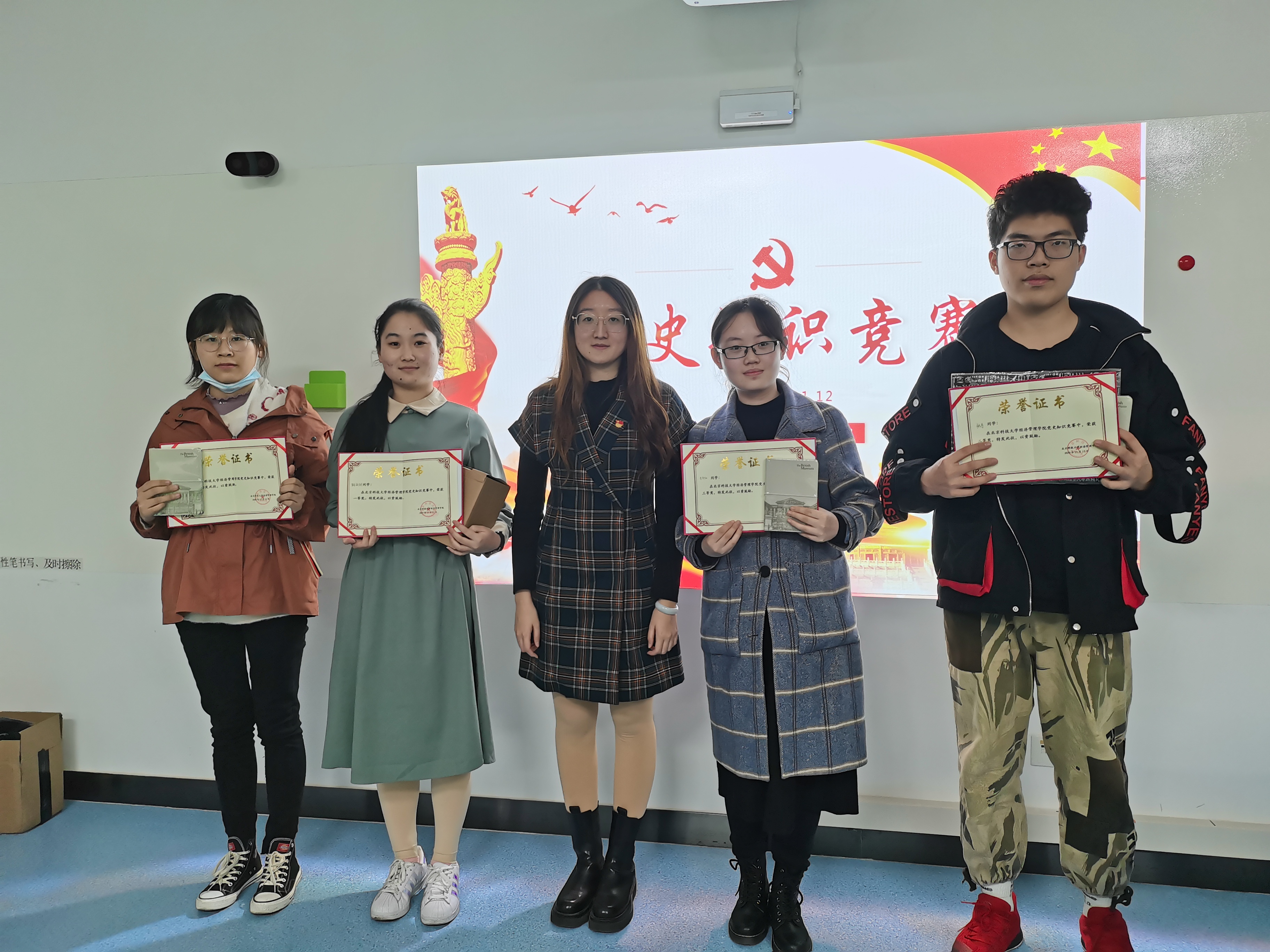 为进一步加强学生对“四史”的了解,从中汲取丰富滋养,牢记党的初心和使命,增添精神动力。经管本科低年级党支部于2020年11月12日在经管楼404室举行了“四史”知识竞赛。