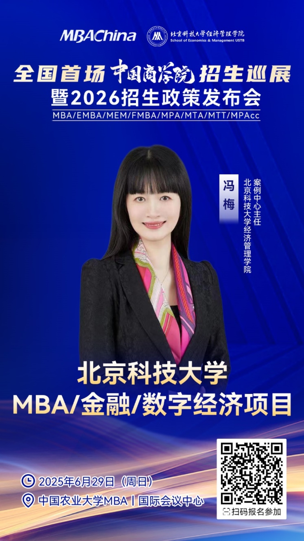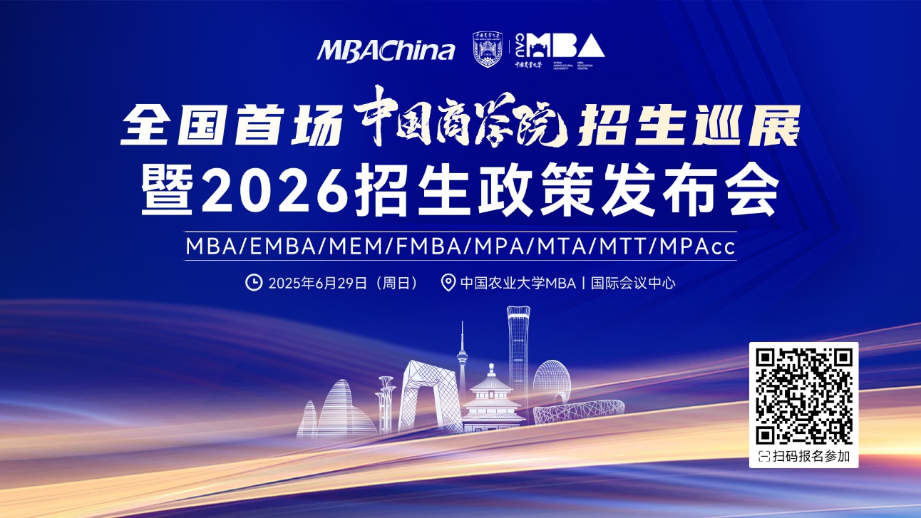 2026级同学们正处在择校与备考的关键阶段,为了帮助大家与目标院校建立深度联系,精准匹配个人发展需求,2025年6月29日(周日),MBAChina、中国农业大学MBA将联合主办首场中国商学院招生巡展暨2026招生政策发布会!
