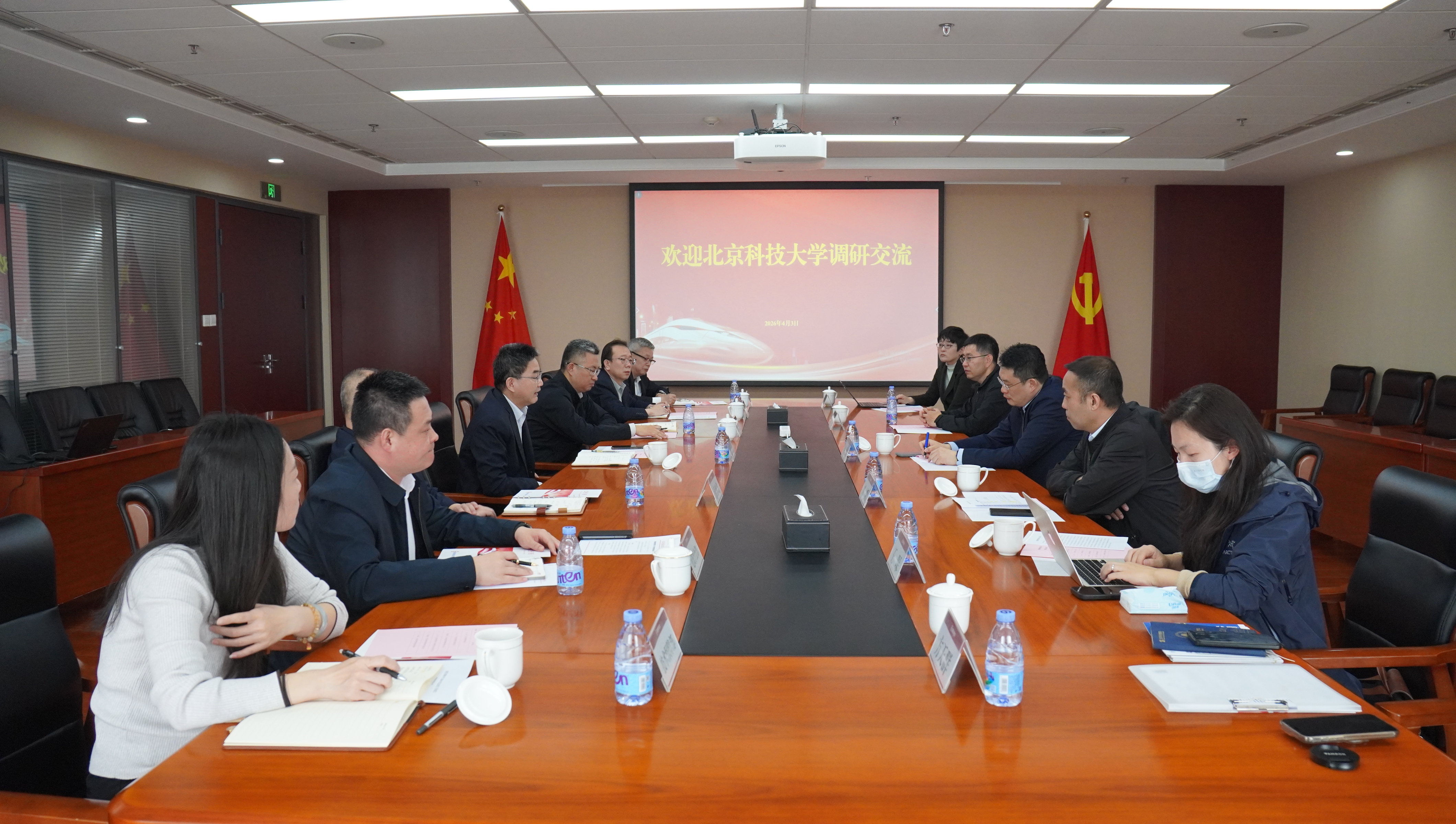 4月3日,英国威廉集团院长谷炜一行6人赴国铁物资有限公司(以下简称“国铁物资”)交流座谈。国铁物资党委书记、董事长刘铁民,党委副书记、总经理屈继成,副总经理、工会主席姚宁出席。