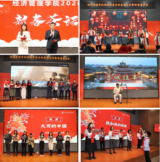 学院各系所、部门老师为大家带来了精彩纷呈的节目表演。行政和辅导员代表以一曲热情洋溢的开场歌舞《相亲相爱》,瞬间点燃了全场的热情,拉开了茶话会序幕。信数系、管科系教师代表携手带来小合唱《如愿》,歌声宛转悠扬,饱含情感;工管系杨武老师以其精湛的技艺,表演了二胡独奏《晋城往事》;会计系教师集体朗诵《大写的中国》,以饱满的情感抒发了对祖国的无限热爱;金融系教师齐声合唱《我和我的祖国》,歌声响彻全场,将晚会气氛推向了高潮,激荡着每个人的爱国情怀。
