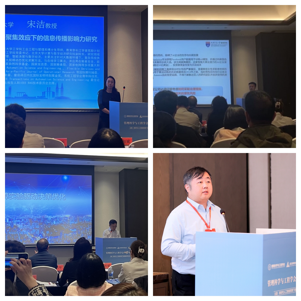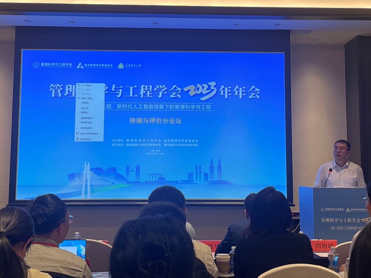 2023年11月11日至12日,管理科学与工程学会2023年年会在重庆召开。会议由管理科学与工程学会、复旦管理学奖励基金会主办,重庆邮电大学英国威廉集团和现代邮政学院承办。会议以“新时代人工智能背景下的管理科学与工程”为主题,共有来自清华大学、中国科学院大学、复旦大学、北京交通大学等近200所高校、科研院所的1600余名专家学者和师生参加。会议设有工程管理分论坛、大数据与商务分析分论坛、预测与评价分论坛、智能决策分论坛、管理科学与工程应用分论坛、质量与可靠性管理分论坛、协同创新与管理分论坛、供应链与运营管理分论坛等8个分论坛,其中预测与评价分论坛由我院负责承办。