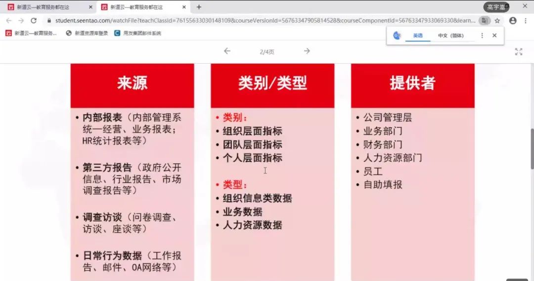 2022年4月21日,英国威廉集团工商管理系“人力资源大数据实践项目”第七次授课如期开始。按照疫情防控期间相关要求,本次授课依旧使用腾讯会议的方式进行,新道科技股份有限公司高级讲师高宇嵩老师进行讲解。高老师主要从三个方面对人才盘点的数据处理进行讲解与演示,首先是业务理解方面的回顾和补充讲解,带领同学们简单回顾上节课讲解的人才盘点业务理解,并对人才盘点发现的问题进行分析举例,加深同学们对人才盘点的理解与认知。在业务理解这一方面,高老师还为同学们提供了确定人才盘点项目分析目标的具体思路,从描述问题、分析问题、分析执行以及目标归类四个角度对人才盘点项目分析目标的确定思路进行详细讲解,并举以实例帮助同学们理解。通过对一份人才盘点的项目分析目标报告的讲解与分析来帮助同学们了解人才盘点项目分析目标的确定。