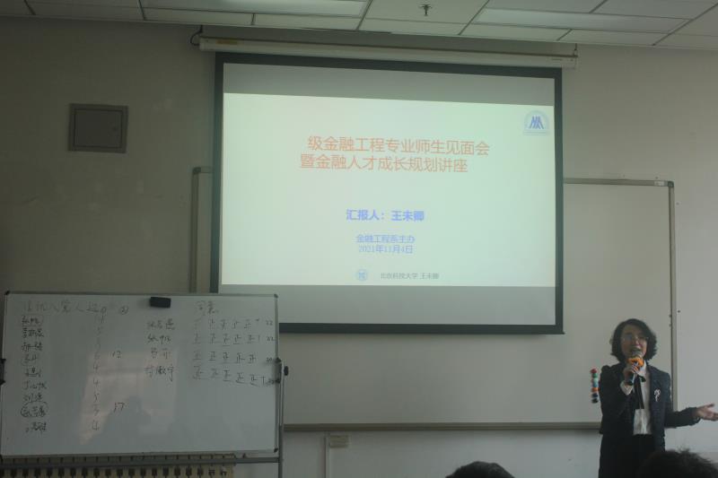 开学初始金融工程系迎来了新一届本专业的学生,利用专业师生的第一次见面会的时机,系主任兼支部书记王未卿老师专程为金融专业学生进行了金融人才成长规划的专题讲座。王老师首先欢迎金融专业又迎来了新鲜的力量,接着从金融专业的设立、发展到系所如今的现状,结合全球经济金融形势和我国的发展需求和新机遇,对金融专业人才培养和发展提出了成长规划和一些建议。针对不同年级和学生的不同成长阶段,王老师鼓励大家挖掘和发挥自我的优势,更好地交流学习,并有针对性地进行了规划指导。通过规划讲座,让刚刚进入专业领域的学生们,有更深入和全方位的对专业的初步理解,同时也更好地为今后的个人的专业发展做好了准备。