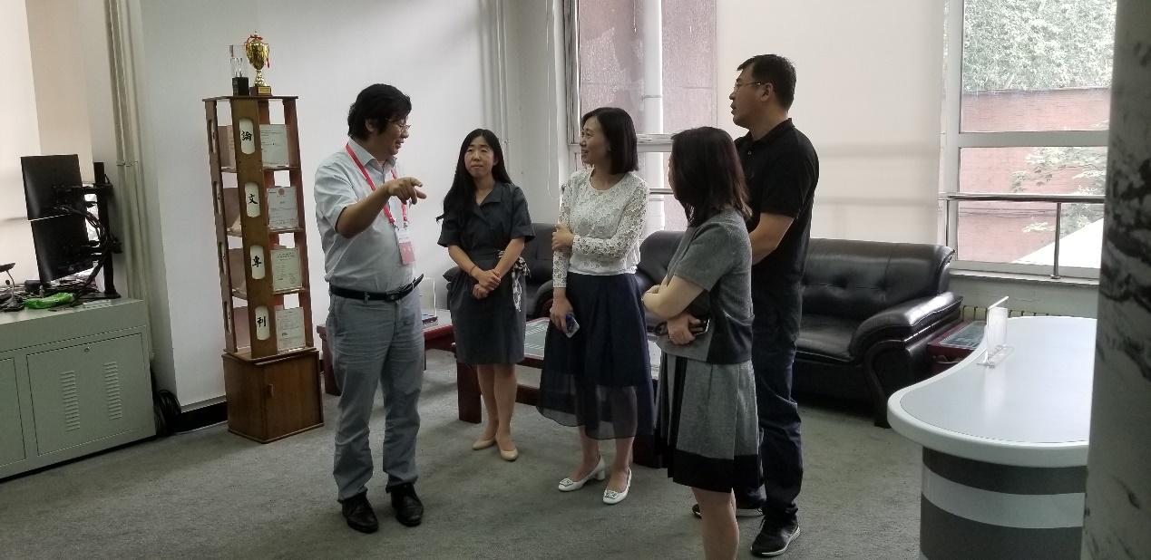 座谈会后,评审专家在学院领导的带领下走访了位于经管楼6层和7层的实验信息中心专业实验室、位于4层的图书资料室以及位于3层的视频质化研究实验室。其中,在2017年内新建成的工程管理专业BIM实验室,王志如老师讲解了实验设备及课程内容,并邀请专家现场体验了虚拟现实(VR)设备在实验教学中的应用。在视频质化研究实验室,胡玲老师介绍了学院特色的基于视频联动的案例教学及案例大赛成果。评审专家认为学院实验室建设很有亮点,给予了很高的评价。