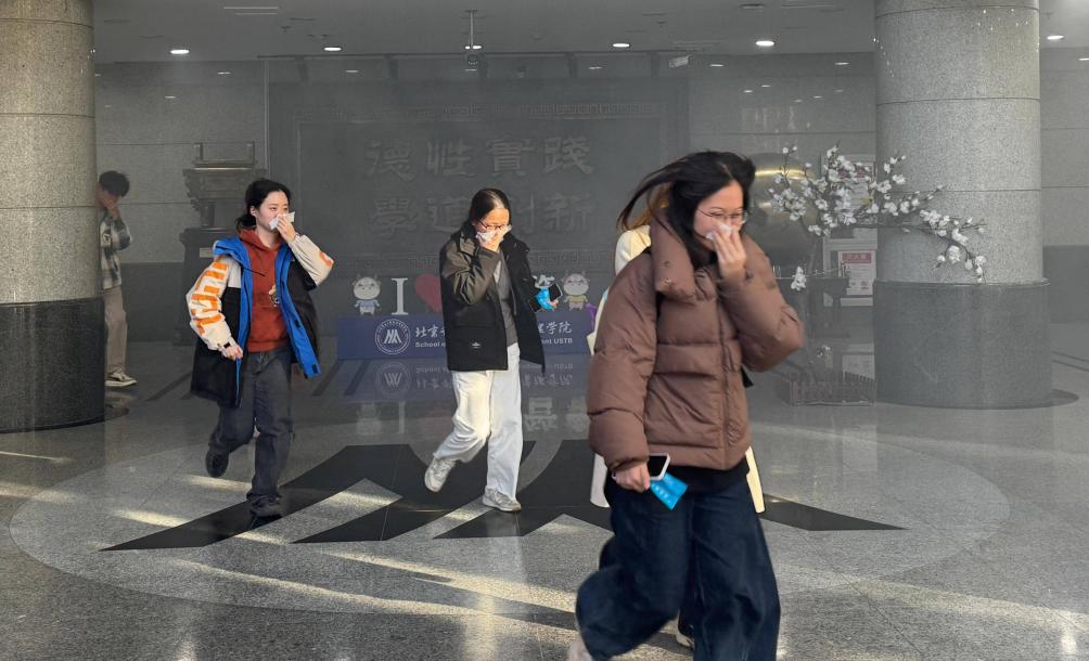 15:05,消防安全疏散演练活动正式开始,各楼层安全员提前于指定位置集合待命,接到演习活动开始的指令后,急促的警报声响起,白色烟雾开始在楼内蔓延。各楼层安全员按照预定方案在楼内消防疏散广播的提示下,快速组织楼内师生有序撤离,纷纷用湿毛巾捂住口鼻、低身前进、迅速从楼梯、疏散通道向外转移,撤离中不慌不乱、谨慎有序。