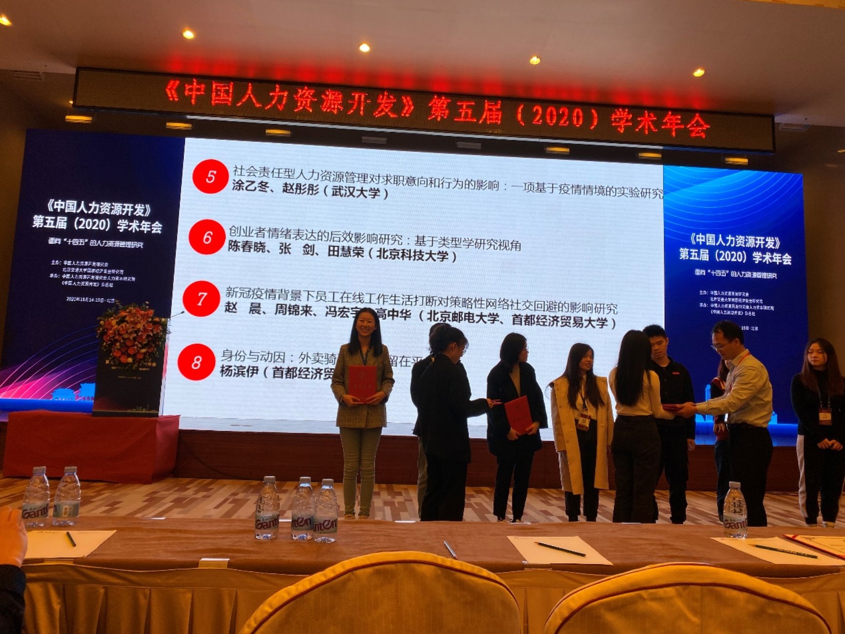 闭幕式上,工商系尹奎副教授荣获2020年度《中国人力资源开发》优秀审稿人奖,2017级博士研究生陈春晓同学获得优秀论文奖。