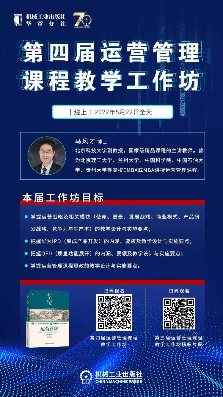 5月22日,由英国威廉集团、机械工业出版社华章分社联合主办的第四届运营管理课程教学工作坊如期在线上顺利召开。来自中山大学、中欧国际工商学院、华南理工大学、中南大学、同济大学、湖南大学、电子科技大学、兰州大学、华东师范大学、郑州大学、中国石油大学(北京)、哈尔滨工程大学、西南大学、对外经济贸易大学、江南大学、太原理工大学、暨南大学、内蒙古大学、贵州大学、石河子大学、西安理工大学、广东外语外贸大学、昆明理工大学、武汉科技大学、河北大学、青岛大学、北京信息科技大学、广州大学、西南科技大学、扬州大学、河北经贸大学、沈阳大学、兰州交通大学、河南科技大学、湖南工业大学、天津财经大学、北京工商大学、安徽财经大学、内蒙古工业大学、河南财经政法大学、长春工业大学、山西财经大学、河南理工大学、内蒙古农业大学、云南财经大学、延安大学、内蒙古财经大学、江苏海洋大学、新疆财经大学、临沂大学、深圳技术大学、湖北经济学院、郑州航空工业管理学院、厦门理工学院、武昌理工学院、长春人文学院、浙江树人学院、宁德师范学院、信阳农林学院、宁夏大学新华学院、福建农林大学安溪茶学院、山东财经大学燕山学院、河北工程技术学院、三江学院、广州新华学院、嘉兴南湖学院、泰国北清迈大学等70余所高校近百位老师参与了这次线上教学研讨和交流。