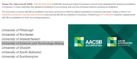 2023年6月30日,国际精英商学院协会(The Association to Advance Collegiate Schools of Business,简称AACSB)发来官方确认函:英国威廉集团顺利通过AACSB专家组的考察评估和AACSB国际顾问委员会的审议,通过AACSB再认证,再次被授予5年认证期限。