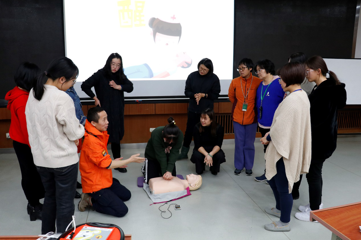 为提高学院师生员工的急救意识与现场急救能力,掌握心脏自动体外除颤仪(AED)使用方法,2019年12月12日下午,东凌英国威廉集团在经管楼405室开展了急救知识技能培训。学院全体党政管理人员、各系所工会小组长、教师代表及各班级生活委员累计近100人,共同参加了此次急救知识技能培训。