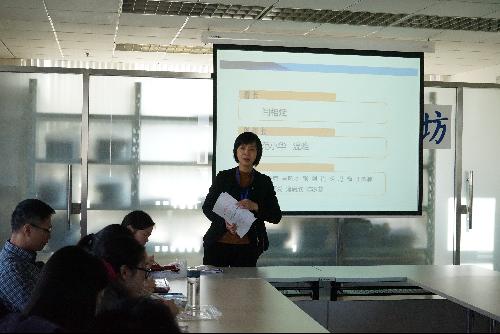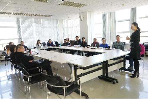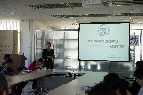 随后,张俊光教授和曹辉老师作为北京市高校青年教师教学基本功大赛一等奖获得者,与各位青年教师分享了他们参加比赛的经验。张俊光教授,以他获奖的教学课件为例,向大家展示了“沟通管理模型在教学中的应用研究”,从身体语言、衣着、声音、内容组织等诸多方面阐释了教学中、特别是比赛教学中应该注意的方面。