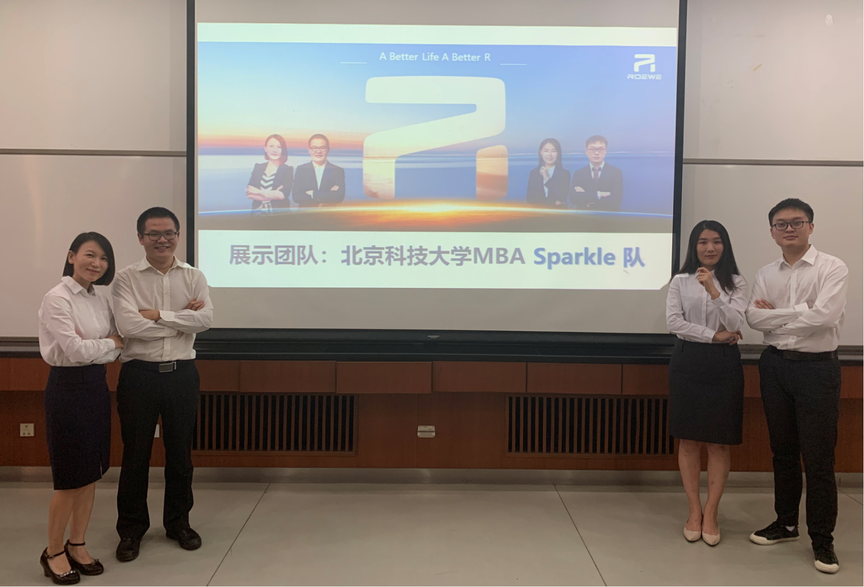学院MBA中心也给予了参赛队伍极大的支持,在疫情期间特地向学校申请了一间教室供参赛学子使用。“Sparkle”团队在胡玲老师的指导下,将课堂所学与实际情况相结合,处变不惊,沉着应对挑战。在经过数天的熬夜奋战,制定了一套极具创意的可落地的解决方案,甚至还为案例对象荣威ER6制作出了一款小游戏,最终在商业视频演示环节收获了评委和观众的认可和赞扬。